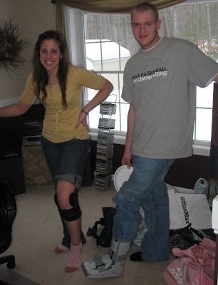 Friday night we started at GA's bball game and got the first glimpse at what Husband is in mid-sentence of saying... "the million dollar leg" :)